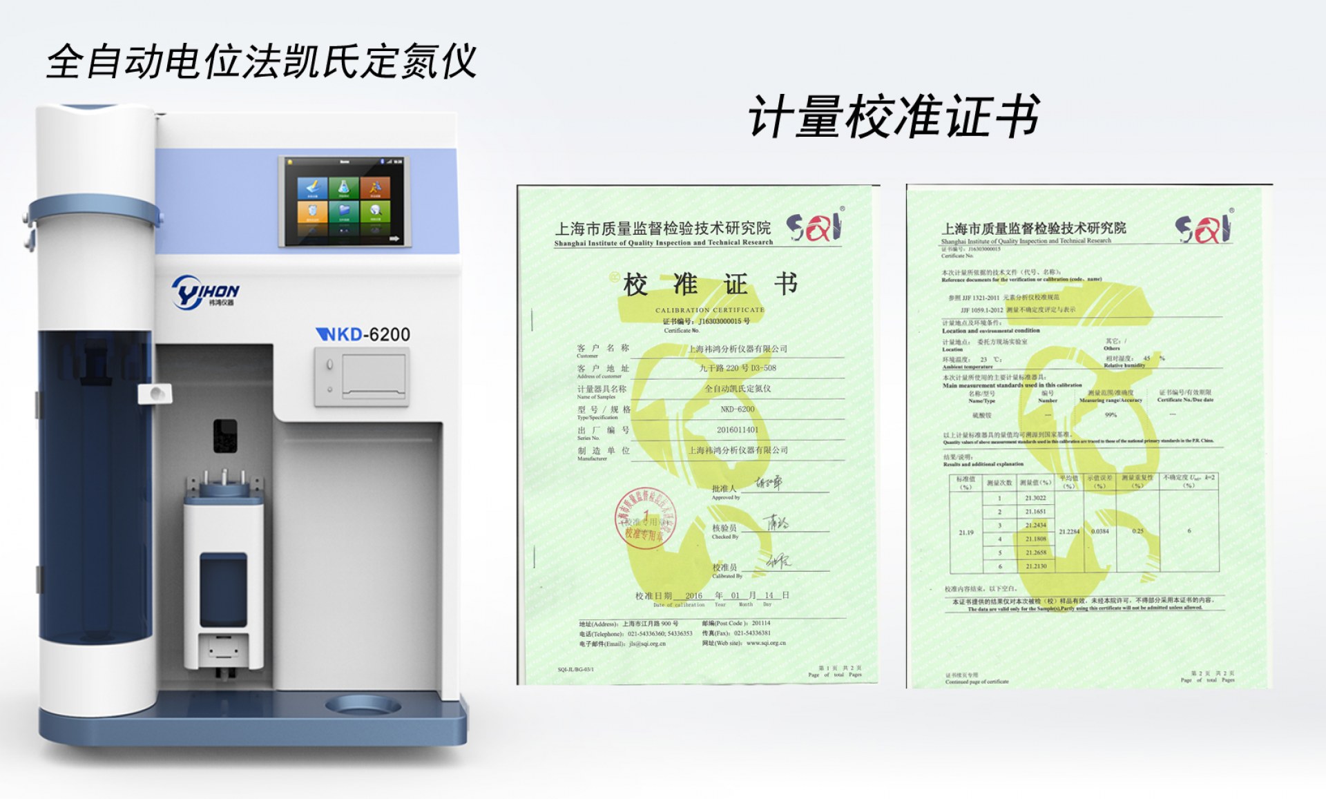 上海祎鴻不僅追求儀器外形設計大氣美觀、注重儀器的先進性與可靠性,而且尤其重視用戶的完美體驗。此次通過權威機構的計量校準,足以彰顯上海祎鴻分析儀器有限公司生產的全自動電位法凱氏定氮儀的卓越品質。