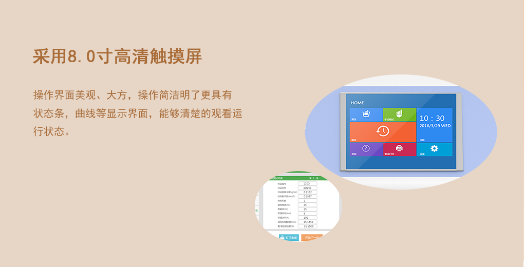 顯示方式 | 8.0寸高清觸摸液晶屏顯示與操作控制 |